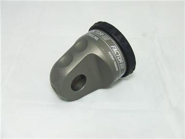 Factor 55 ProLink Loaded Shackle Mount With Titanium Pin & Rubber Guard - GrayFactor 55 introduces the new ProLink shackle mount for winch cables and synthetic ropes. Engineered and machined in the USA from lightweight billet 6061 aluminum, the ProLink provides a safe means to easily attach a standard 3/4" screw pin shackle to existing winch cable and rope eyes The cable or rope eye is captured into the body of the ProLink by a removable oversized 5/8" double shear pin. The front of the ProLink provides the precision shackle mounting hole and massive 1.2" thick mounting tab. The ProLink is compatible with both Hawse and Roller fairleads and snugs neatly against both versions. The advantages of winching with a screw pin shackle over a conventional winch hook are many : Screw pin shackles are up to 5X stronger than conventional winch hooks Conventional hooks are too small to safely fit both ends of a recovery strap Recover straps cannot slip out of a shackle like they can with hooks Hook safety latches are not rated for loads and can tear recovery straps Conventional hook surfaces add higher stresses to recovery strap fibers, resulting in decreased strap ratings Shackles can be quickly removed and stowed away until needed for winching. Hooks do not cinch neatly against fairleads and are prone to rattling and loosening Conventional winch hooks are designed for chains - not commonly used recovery straps Engineered, Tested, and Made in USA - Patent Pending Stress analyzed using COSMOS FEA and destructively tested for confirmation Billet construction - precision machined from 6061-T6 Kaiser Aluminum round bar 16,000 pound max load rating Fits all steel cables and synthetic ropes up to 3/8" in diameter Fits eyes equipped with standard or tube thimbles to 3/8 inch diameters 1.2 inch shackle tab thickness virtually eliminates "shackle rattle" rubber barb attachment Can be installed and removed in minutes - simple snap ring removal
